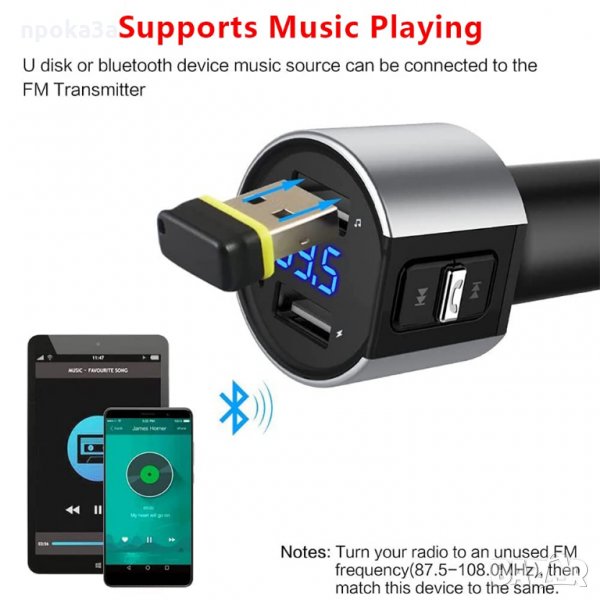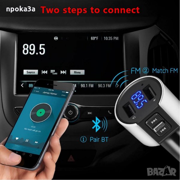 FM трансмитер с bluetooth и зарядно за телефон → Обява 35570708