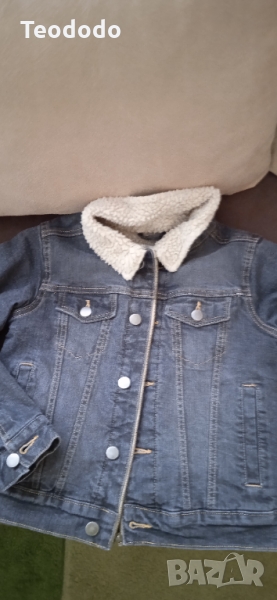 Детско яке Lidl, изключително запазено, ръст 134, цена 18. Термо горнище Everest, ръст 122-128 + тениска Gap за 8 г., цена 5€. Всичко за 12.5 € с подарък ватирана блуза H&M. Дънково яке с каракул, размерът се вижда на снимката + зелена ватирана блуза, цена 7.5€