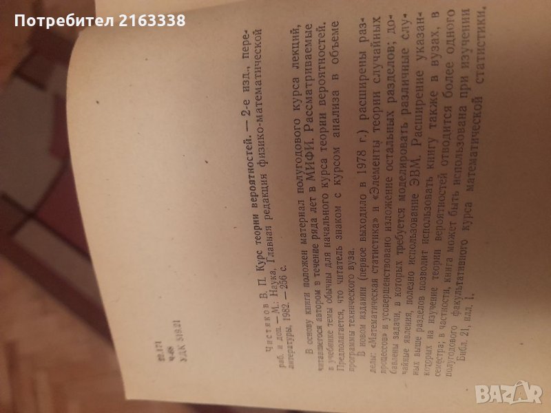 КУРС ТЕОРИИ ВЕРОЯТНОСТЕЙ В.П.ЧИСТЯКОВ → Обява 35584397
