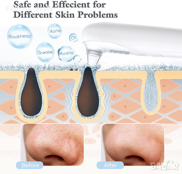 Може лесно да премахне черни точки, акне и комедони по челото, бузите, носа и др.