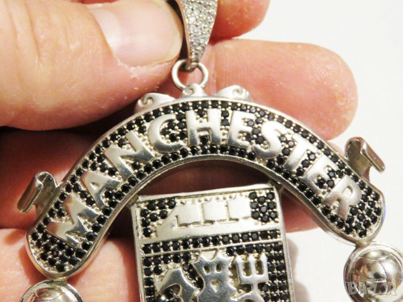 Голяма сребърна емблема на Manchester United, Манчестер юнайтед - красота с много блестящи камъни маркенази и циркони за феновете на най- големия футболен отбор.