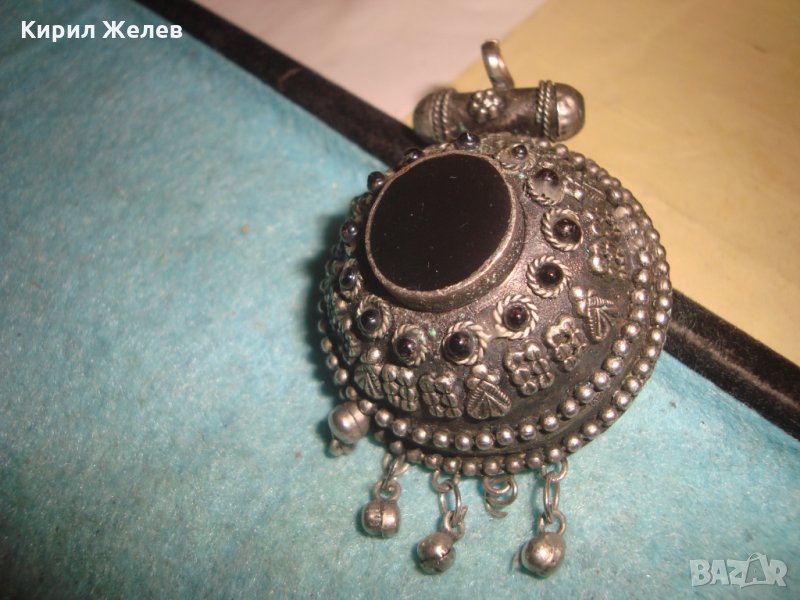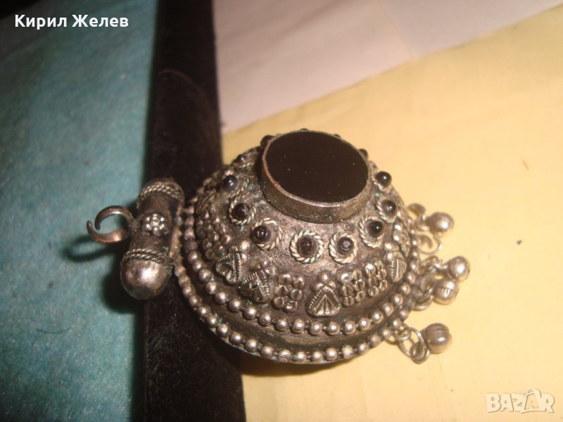 СТАРО ОСМАНСКО САЧАНЕНО УКРАШЕНИЕ с ШЛИФОВАН ЧЕРЕН ОНИКС ГРАНУЛАЦИЯ ЕТНО БИЖУ МАЙСТОРСКАРАБОТА 25877