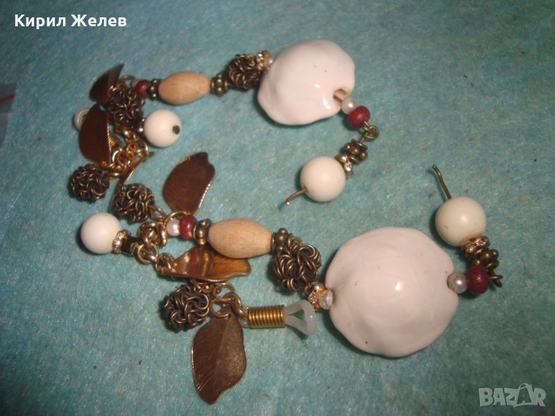 2 СТАРИ ВИНТИДЖ АРТ ВИСУЛКИ УКРАШЕНИЯ БЯЛ ПОРЦЕЛАН МЕСИНГ ДЪРВО ХЕНД МЕЙД 25538
