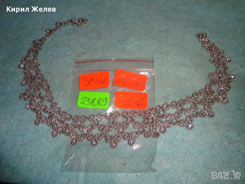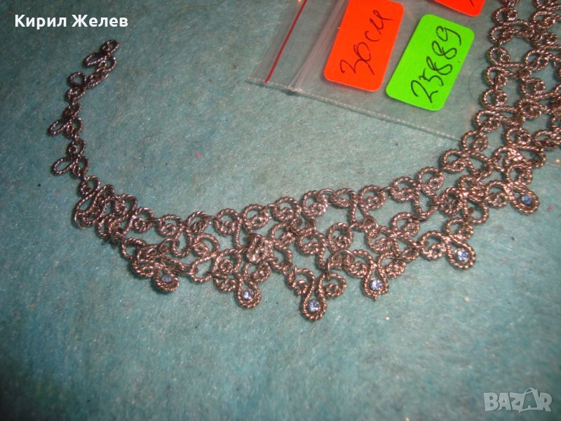 ПОСРЕБРЕНА СКЪПОЦЕННА ОГЪРЛИЦА със СИНИ ФАСЕТИРАНИ КРИСТАЛИ АРТ ДЕКО КОЛИЕ ФИЛИГНАРЕН ТИП 25889