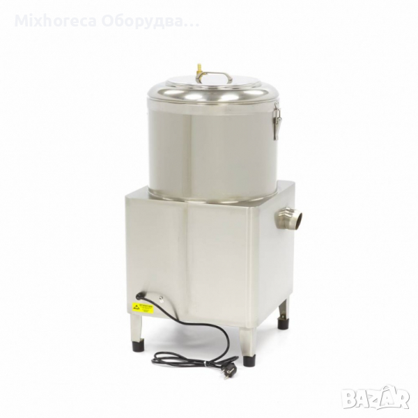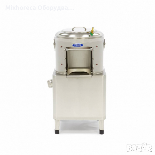 Автоматична Картофобелачка с капацитет 15 кг белене и измиване на картофи, 2-3 минутен цикъл до 300 кг на час. От горната страна на машината влиза чистата вода, която задвижва картофите по шкурката и гарантира равномерно белене. За бързо и ефективно почистване в долната част е разположен дренаж и контейнер за отпадъци. Устойчива конструкция от неръждаема стомана. Подходящ за картофи, моркови и ряпа. Корпус, купа и врата от неръждаема стомана. Технически параметри на продукта