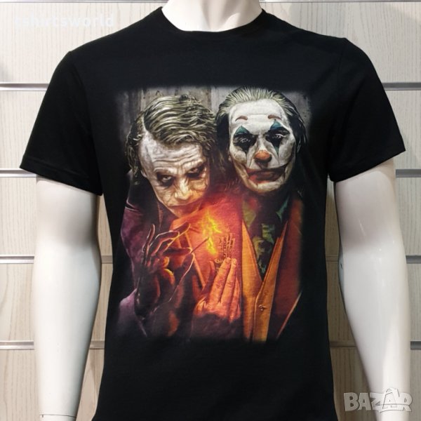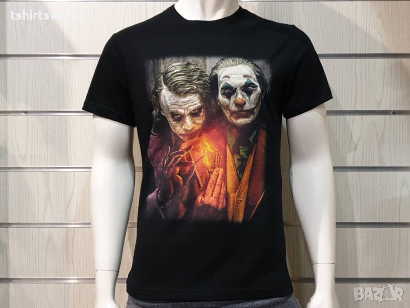 Страхотна нова черна мъжка тениска с професионално изработен висококачествен дигитален печат на Жокера,
