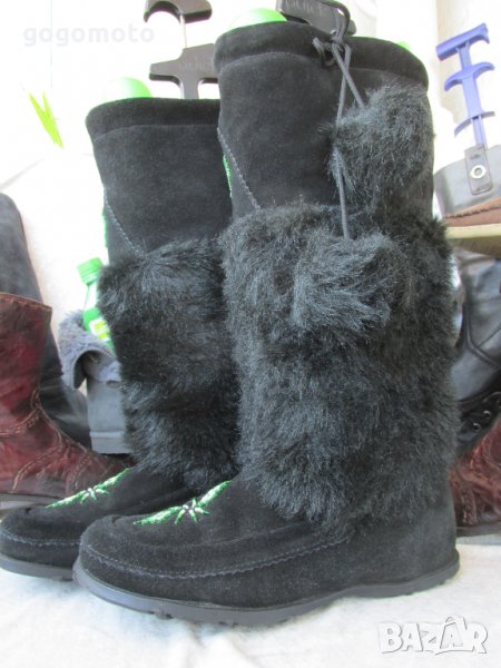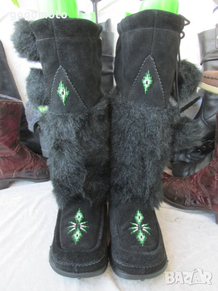 Black genuine goat fur snow boots, after ski furry boots, mukluks 39 - 40
