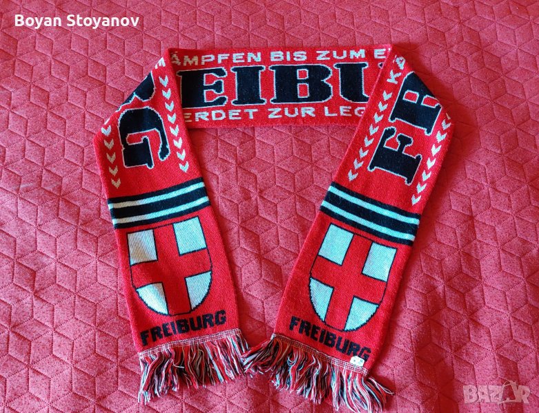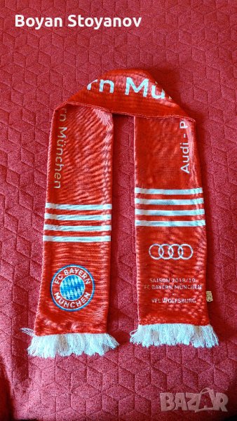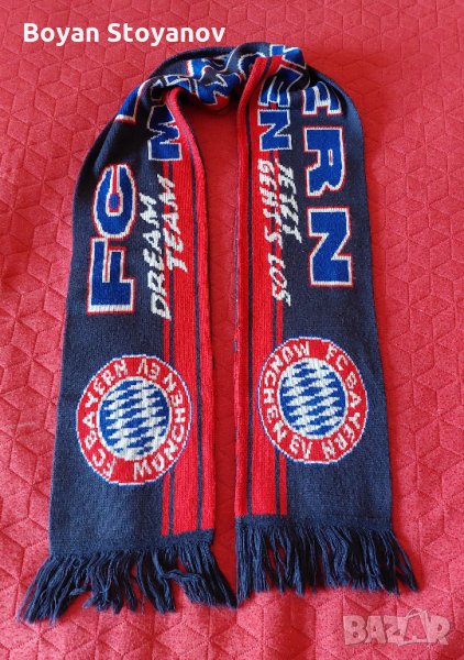 Футболни шалове на различни отбори. Цената на плетените шалове на Байерн, Кайзерслаутерн, Фрайбург и Интер е 25 лв. за брой. Може бартер за шал на Барселона или Милан. Малкият шал на Байерн от снимки 7 и 8 е 15 лв. Синият шал от снимки 5 и 6 е 4 лв.