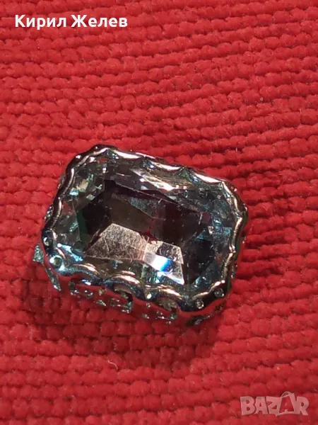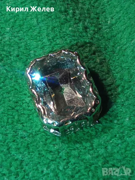 ГОЛЯМ ЮВЕЛИРНО ФАСЕТИРАН ЧИСТ ПЛАНИНСКИ КРИСТАЛ в ПОСРЕБРЕН АЖУРЕН ОБКОВ РЕТРО БИЖУ 20962