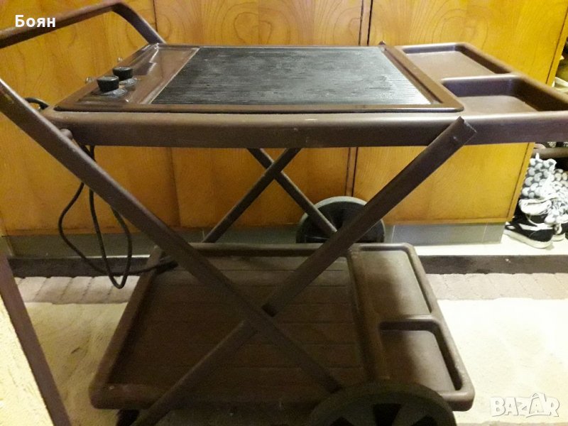 Немска грил количка, в отлично състояние, 2.15 kW. Грилът е много малко използван. Плочата е с размери 40/ 37 и е с две части, всяка от които е с оттделен бутон за регулиране на температурата.