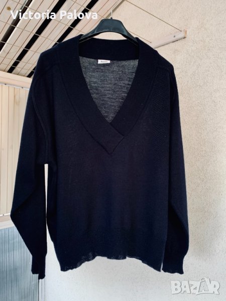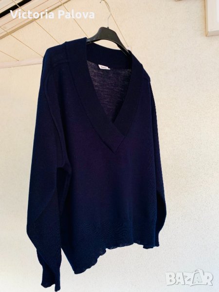 Неупотребявана блуза с невероятни детайли-няма шев по рамото,а около него,много красив кант по v-образното деколте-стилно и съвремено.цветът е наситен син,блузата е безтегловна и гладка,вълна и полиакрил,пере се в пералня.ГО-57см,дължина-61см,ръкав под мишница-44см.