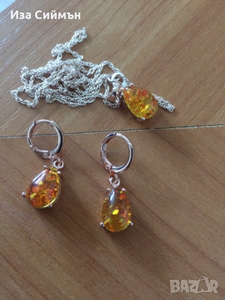 Комплект кехлибар обици и колие, снимка 1 - Бижутерийни комплекти - 35604384 Комплект кехлибар обици и колие, снимка 2 - Бижутерийни комплекти - 35604384 1/2