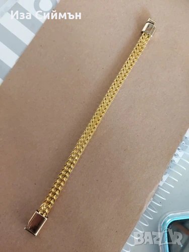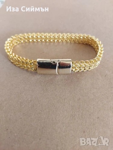 Масивна гривна с позлата, не потъмнява и не избелява с времето, дължина около 21см, налична е и в сребърен цвят.