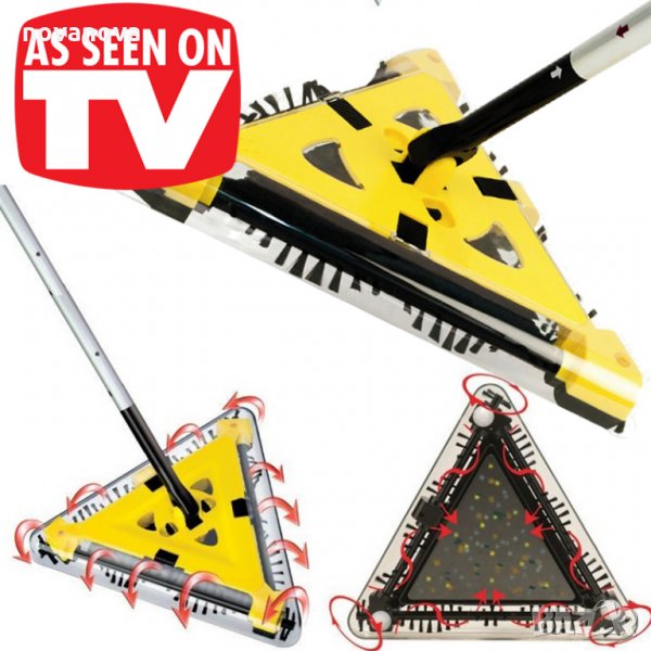 Супер олекотена високоскоростна електрическа метла с презареждаема батерия и триъгълна навсякъде достъпна глава.