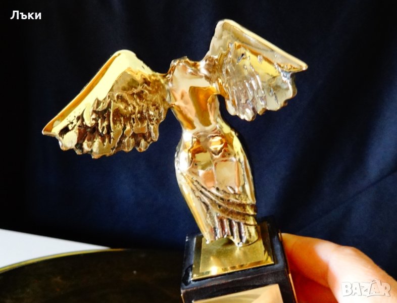 Наградна статуетка Богиня Нике,изработена по поръчка на Община Варна от известния скулптор професор Пламен Братанов.Материал художествен бронз/месинг с основа от естествено дърво.Височина 16 см.,тегло 340 гр.