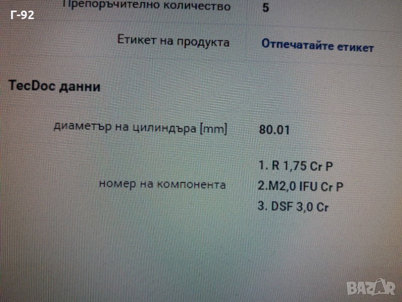 **ЦЕНА ЗА К-Т ЗА 1 ЦИЛИНДЪР**