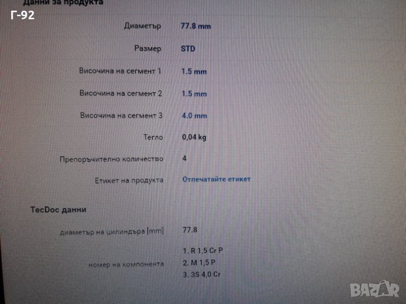 **ЦЕНА ЗА К-Т ЗА 1 ЦИЛИНДЪР**