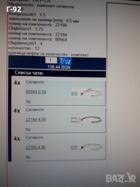 **ЦЕНА ЗА К-Т ЗА 1 ЦИЛИНДЪР**