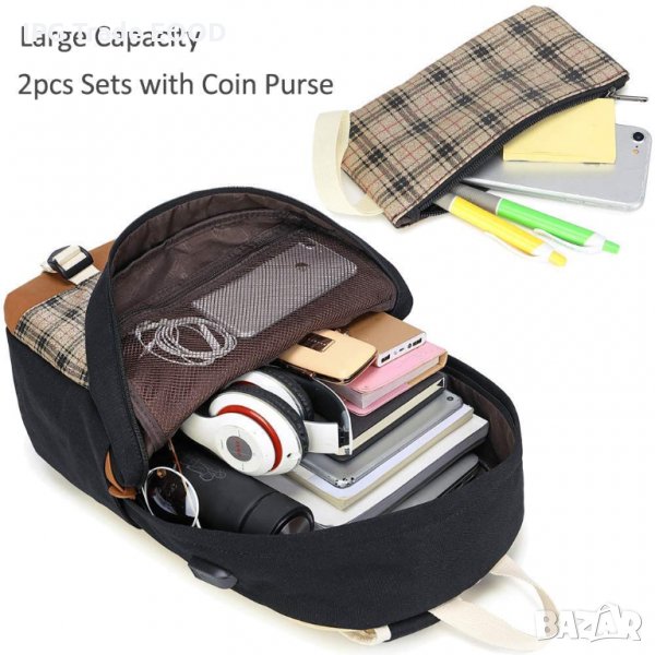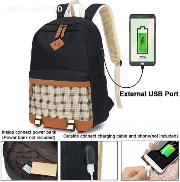 Раница с подарък портмоне и порт за зареждане / училищна