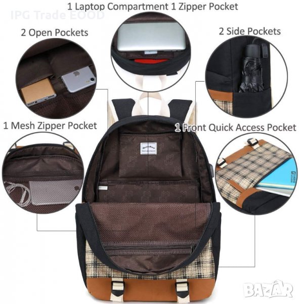 - Вътрешно разпределение - основно отделение побиращо лаптоп с размер до 15.6 инча, преден издадедн джоб, странични джобове