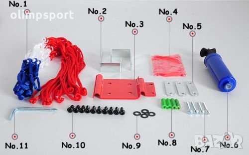 Баскетболно табло с кош за деца. За монтиране на стена, врата или друга стабилна повърхност /комплектът съдържа необходимите елементи за монтаж/. Комплектът включва мрежа и помпа. Игличката на помпата се намира във външния край на буталото.