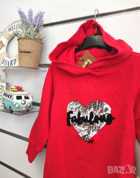Fabulous ❤️ Маркова рокля - туника с качулка и с пайети ✨ Лека вата. Налични размери: 2 години и 3 години 🛍️ За още моделчета разгледайте и останалите обяви в профила ми.