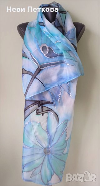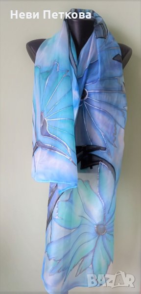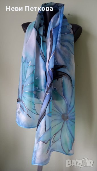Рисуван копринен шал ЛАЗУРНО → Обява 35617568