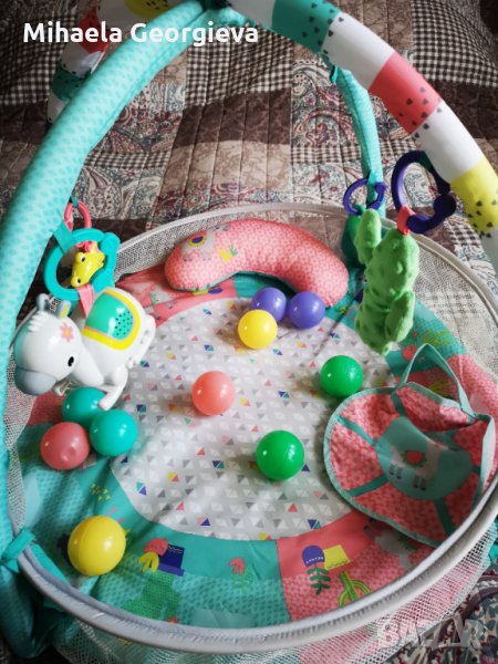 Активната гимнастика е ползвана много малко, абсолютно здрава, без следи от употреба, с възглавничка, топчета и играчки.