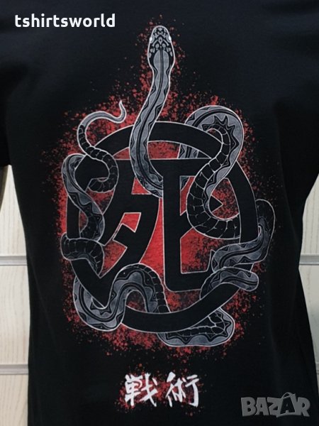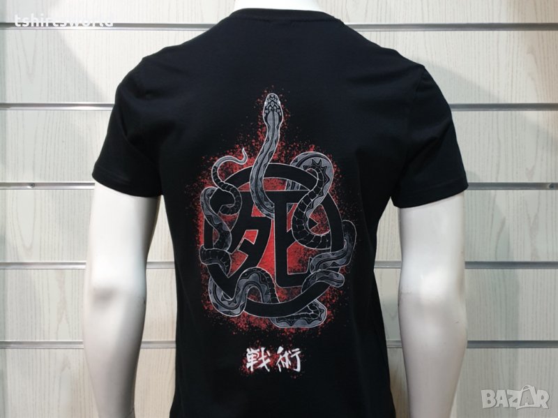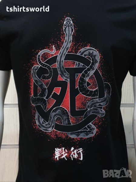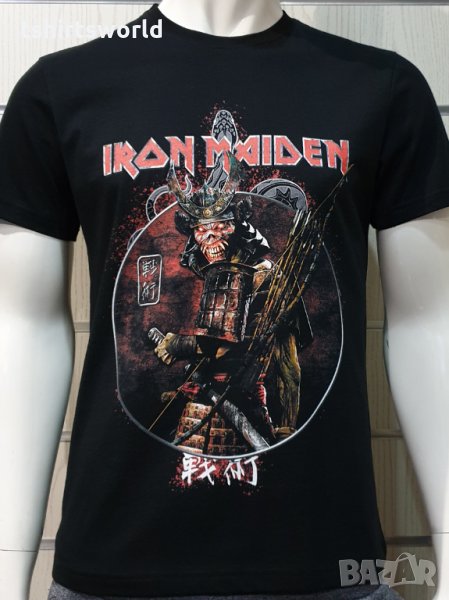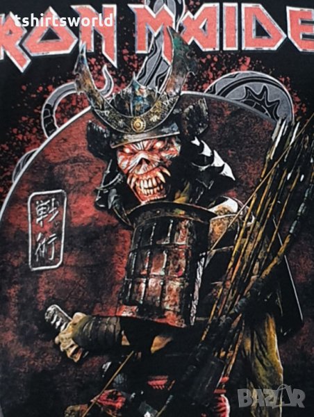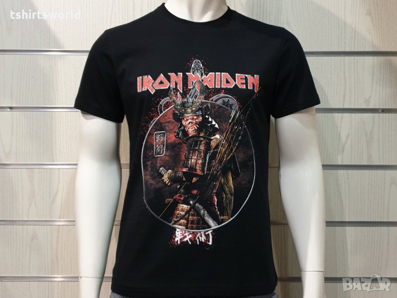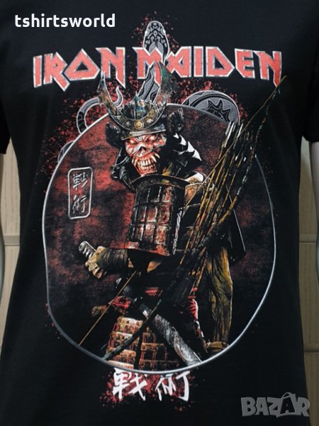 Страхотна нова мъжка тениска в черен цвят с дигитален печат на музикалната група IRON MAIDEN -Senjutsu Samurai Eddie Snake Death с дигитален печат и на гърба