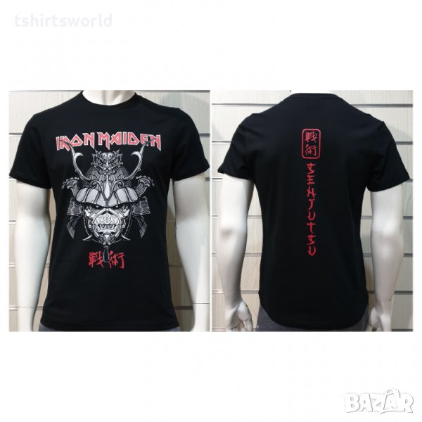 Страхотна нова мъжка тениска в черен цвят с дигитален печат на музикалната група IRON MAIDEN -Senjutsu Samurai Eddie Graphic Navy