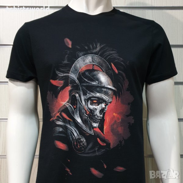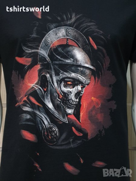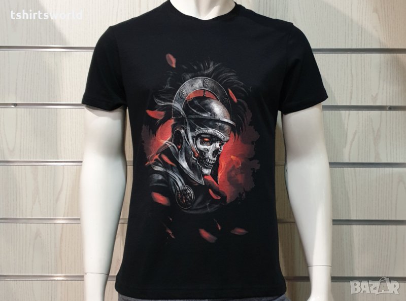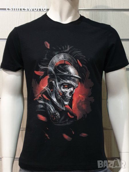 мъжка тениска в черен цвят с дигитален печат Рицар - Череп (Скелет). Тениската е изработена в България под марката PRINTEX от висококачествен 100% пениран памук на 170 гр./м², който запазва цялостта на материята и наситеността на цветовете. С удобна кройка, тениската е свободна и позволява максимален комфорт при носене. Професионално изработен висококачествен дигитален печат, устойчив на пране с години. Тениската може да се пере при температура до 40 градуса. Спокойно можем да гарантираме за качеството на изработката и ярките цветове на дизайна.