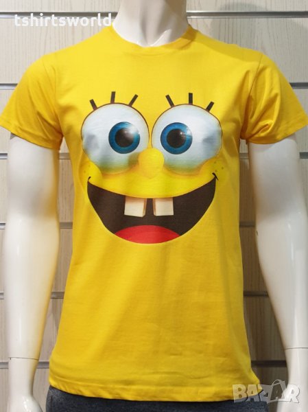 Страхотна нова мъжка тениска в жълт цвят с дигитален печат Спондж боб. Тениската е изработена в България под марката PRINTEX от висококачествен 100% пениран памук на 170 гр./м², който запазва цялостта на материята и наситеността на цветовете дълго време. С удобна кройка, тениската е свободна и позволява максимален комфорт при носене. Професионално изработен висококачествен дигитален печат, устойчив на пране с години. Тениската може да се пере при температура до 40 градуса. Спокойно можем да гарантираме за качеството на изработката и ярките цветове на дизайна.