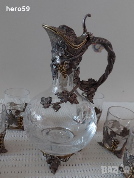 Руски сребърни чаши с кана-сребро 84 и кристал