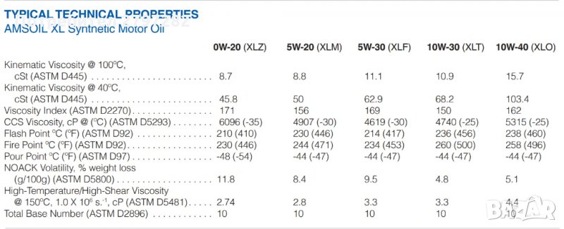 Налични и останалите вискозитети от серията XL - 0W-20, 5W-20, 10W-30, 10W-40.
