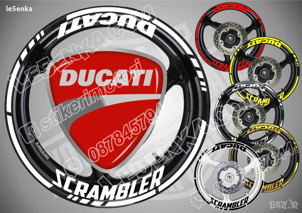 Комплект надписи и кантове за джанти за мотор. Изработват се след поръчка от автомобилно ПВЦ изрязано CUT фолио и са подготвени за монтаж с транспортна лента. При поръчка, моля следва да посочите цолажа на джантите. В случай , че не го направите – ще Ви изпратим комплект за 17 инчови джанти. т.к. повечето модели са с този размер.