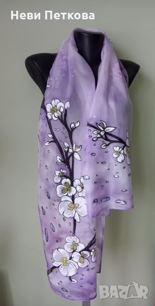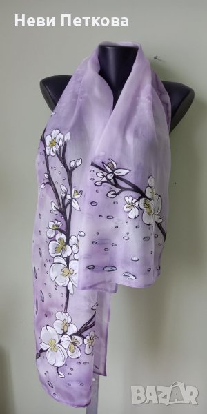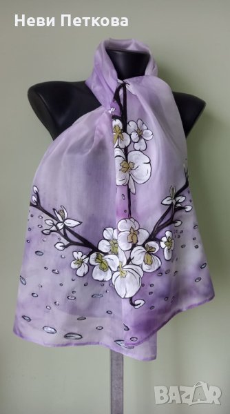 Шал ОРХИДЕИ С КАПКИ ДЪЖД -лавандула → Обява 35629213