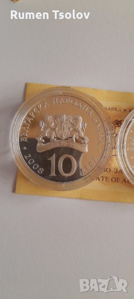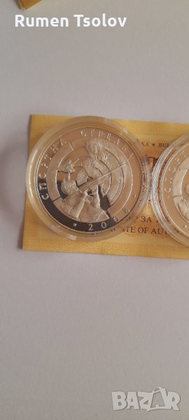 10 лева 2008 год Спортна стрелба сребърна монетка → Обява 35632625