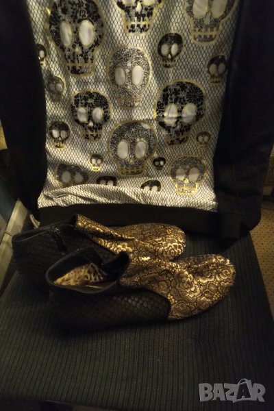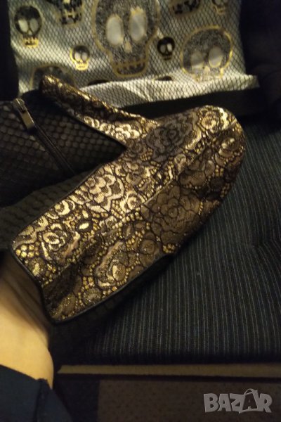 Еко кожа черни с великолепна златна паяжина от цветя .
