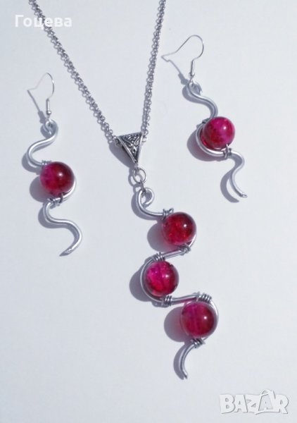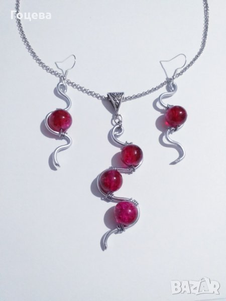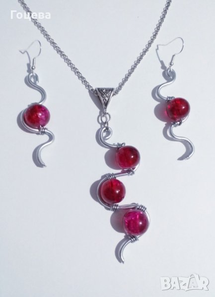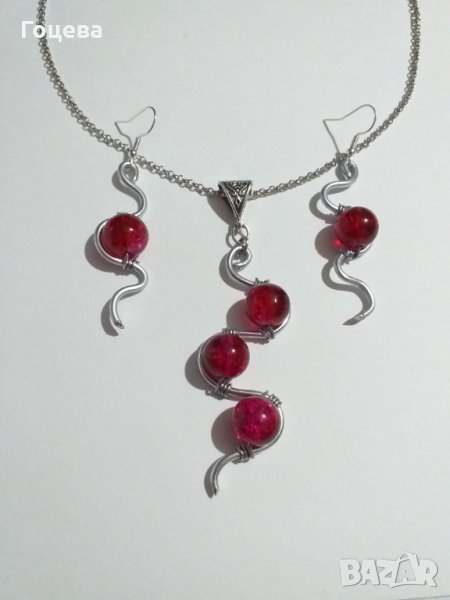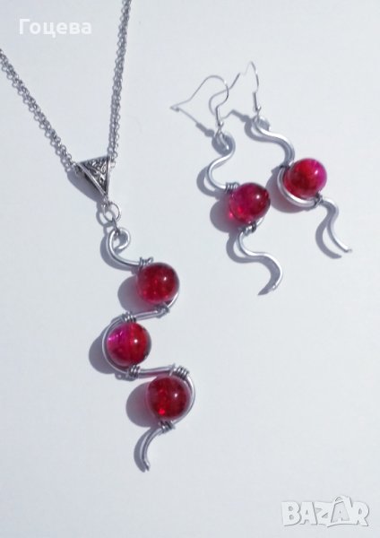 Разкошен комплект бижута в рубинено червено с прекрасни елементи в цвят сребро.