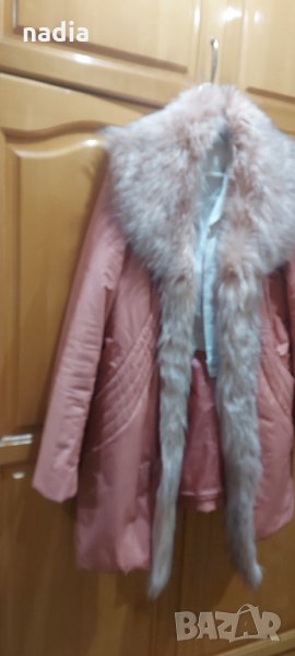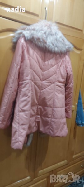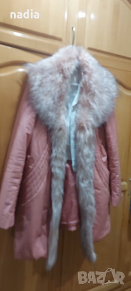Дебело зимно яке цвят Бордо с качулка и голям пух на нея → Обява 35641766