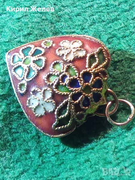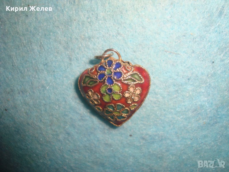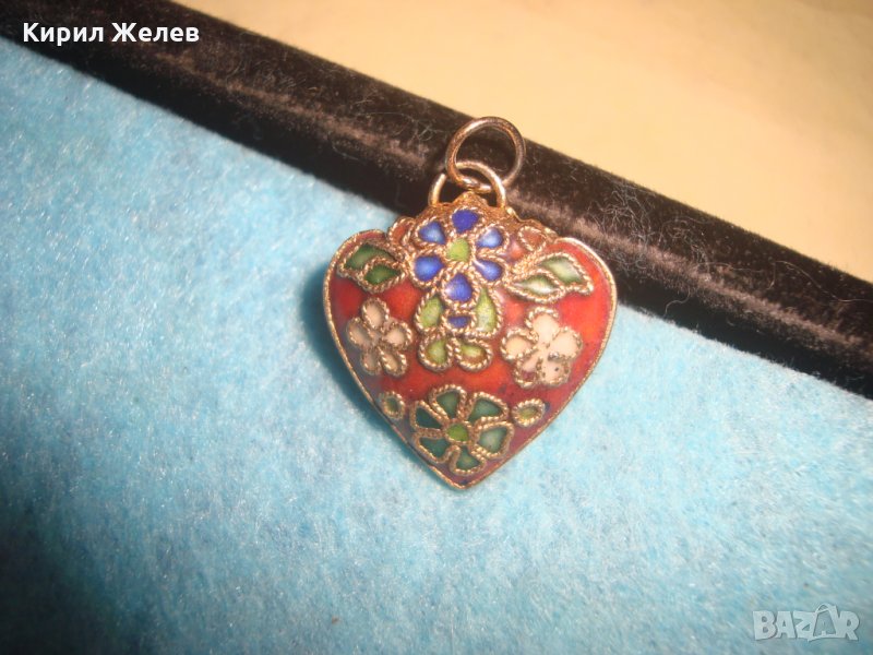 СТАРО ПОЗЛАТЕНО АРТ ДЕКО БРОНЗОВО СЪРЧИЦЕ с КЛЕТЪЧЕН ЕМАЙЛ РЪЧНА РЯДКА ИЗРАБОТКА УНИКАТ 20125