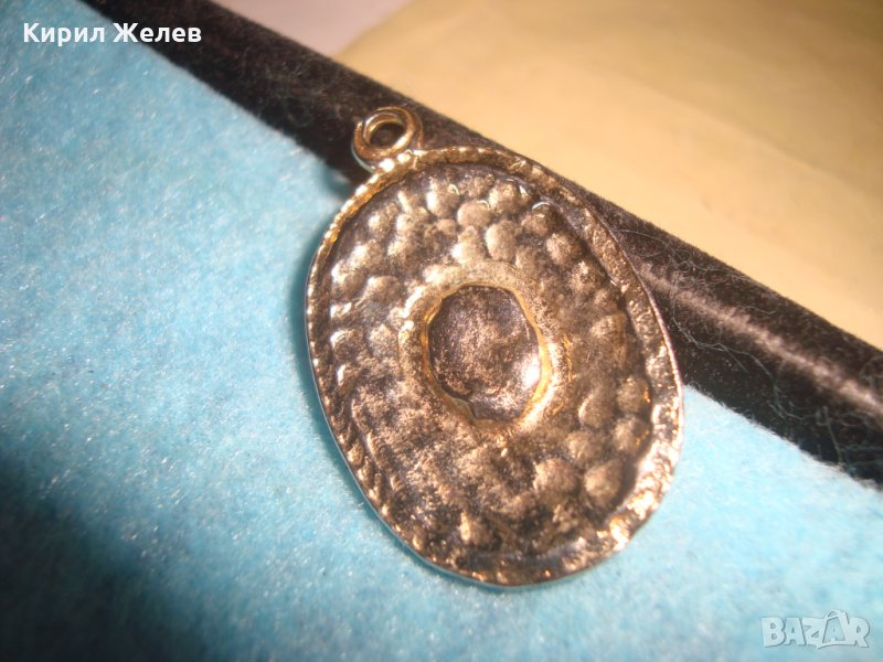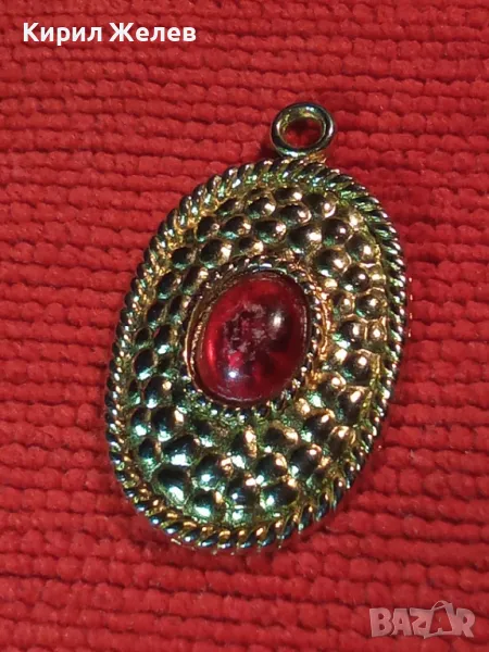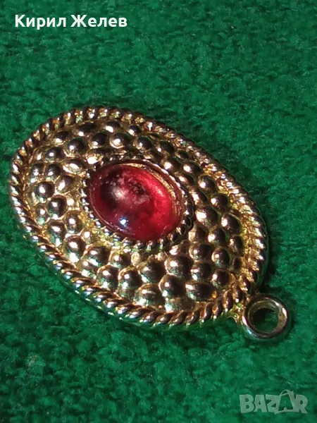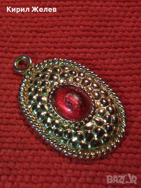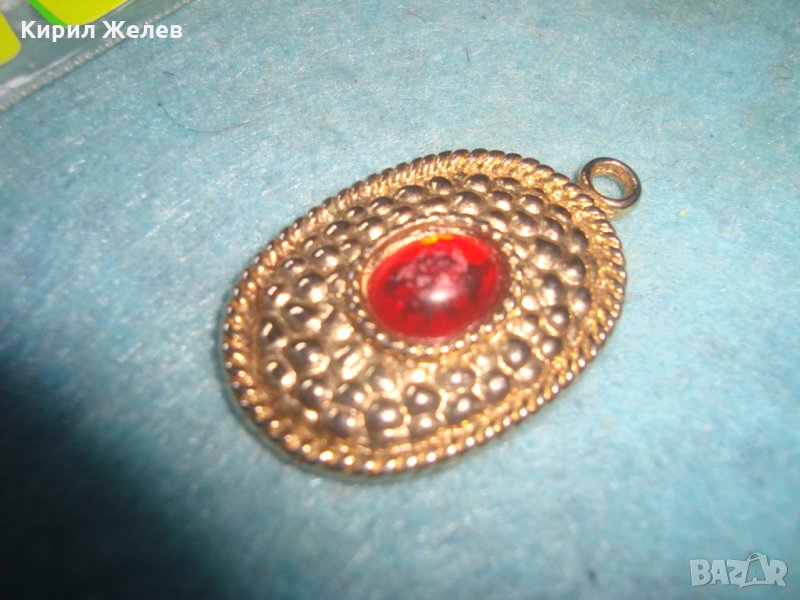 ПОЗЛАТЕН БРОНЗОВ СТАР АРТ НУВО СТИЛ КРАСИВ МЕДАЛЬОН с РЯДЪК ЧЕРВЕН КАТАЛИН 20195