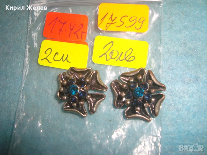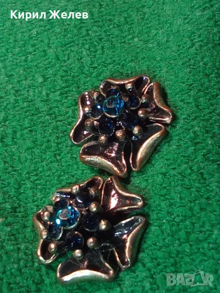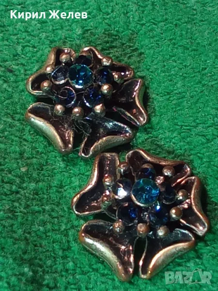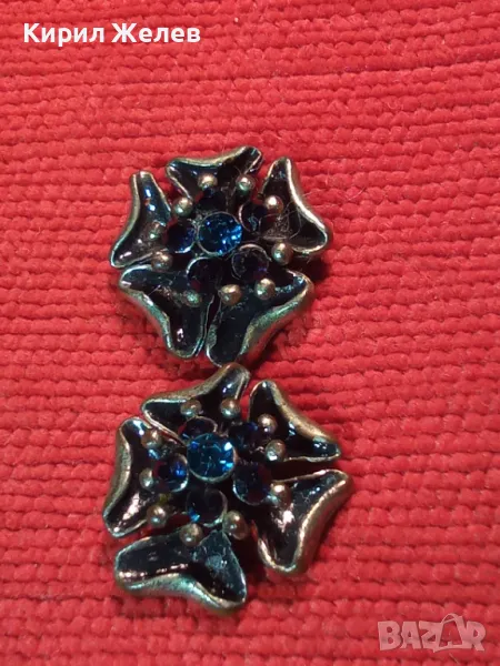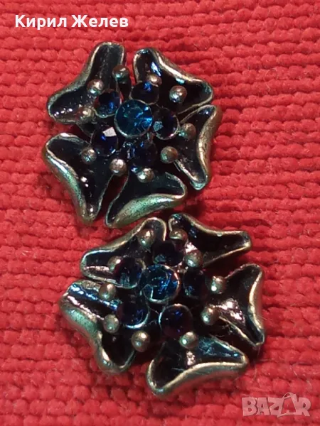 2 СТАРИ ФЛОРАЛНИ ПОСРЕБРЕНИ МЕДНИ УКРАШЕНИЯ с ФАСЕТИРАНИ ЦВЕТНИ КРИСТАЛИ АРТ АПЛИКАЦИЯ ЦВЕТЯ 17599