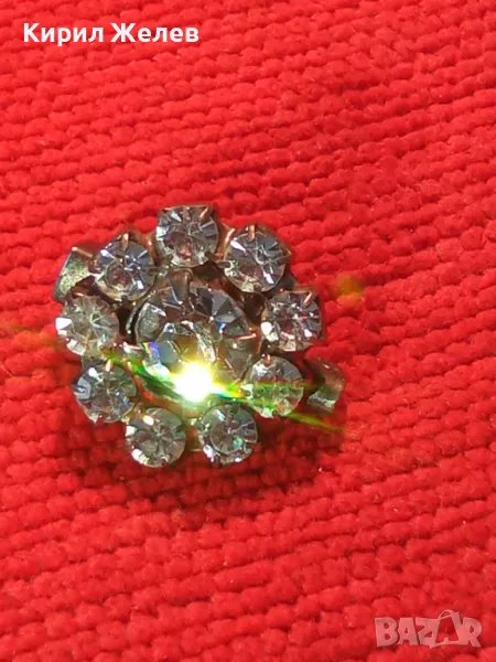 СТАРА СКЪПОЦЕННА ФЛОРАЛНА СРЕБРИСТА БРОШКА с ФАСЕТИРАНИ БОХЕМСКИ КРИСТАЛИ и ЦИРКОНИ 11846