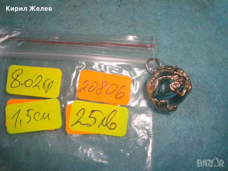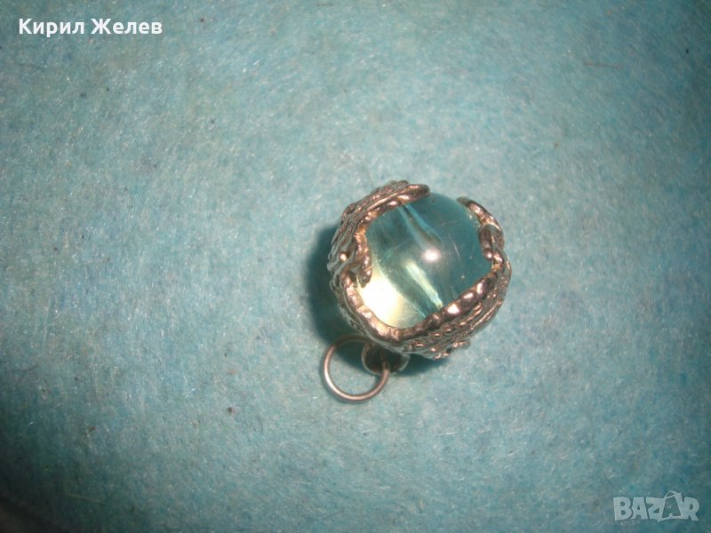 СТАР ПОСРЕБРЕН КРИСТАЛЕН БЕЛ ЕПОК АРТ ПЕНДАНТ МЕДАЛЬОН с ВЕНЕЦИАНСКО СТЪКЛО ТОПЧЕ МУРАНО 20806