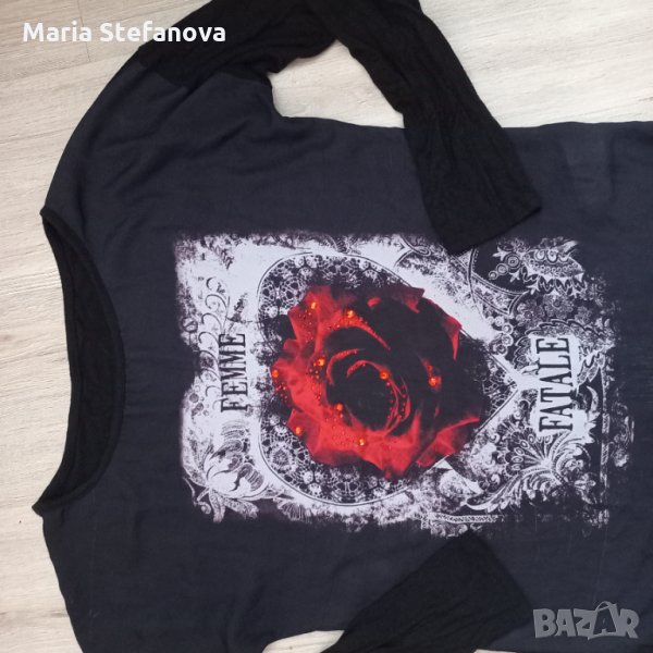 Блуза с ефектна роза, снимка 1 - Блузи с дълъг ръкав и пуловери - 35643612 Блуза с ефектна роза, снимка 2 - Блузи с дълъг ръкав и пуловери - 35643612 1/2