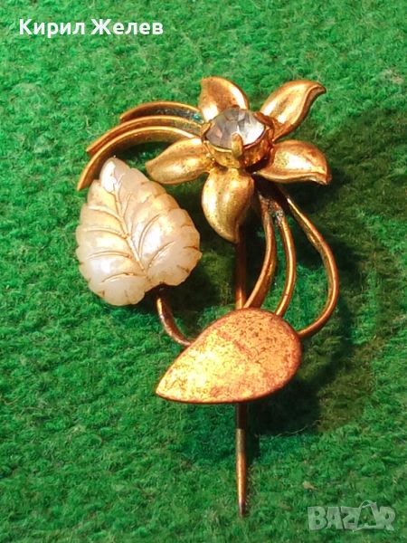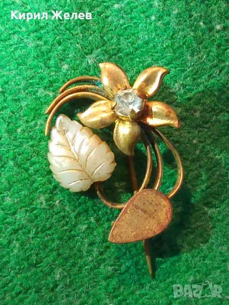 СТАРА БЛОНЗОВА ПОЗЛАТЕНА АРТ ДЕКО СКЪПОЦЕННА БРОШКА ЦВЕТЕ МАЙСТОРСКА РЪЧНА ИЗРАБОТКА 25335