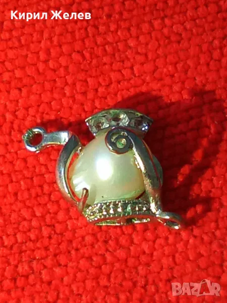 КРАСИВ ПЕРЛЕН СРЕБРИСТ СКЪПОЦЕНЕН ПЕНДАНТ МЕДАЛЬОН 23796