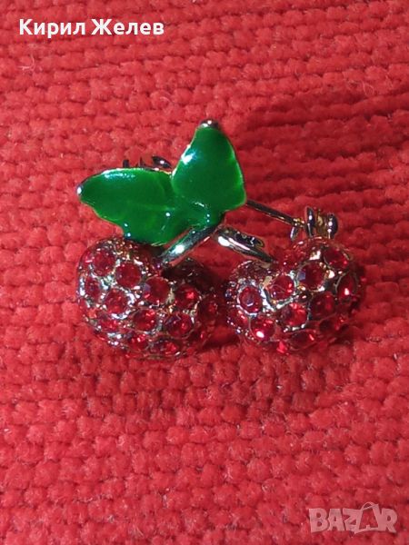 ЕМАЙЛИРАНИ ПОЗЛАТЕНИ СКЪПОЦЕННО УКРАСЕНИ ЯГОДКИ ВИНТИДЖ АРТ НУВО КРАСИВА БРОШКА БРОНЗОВА 72791