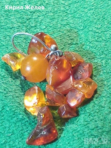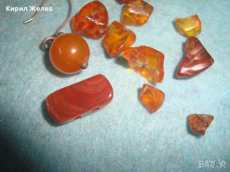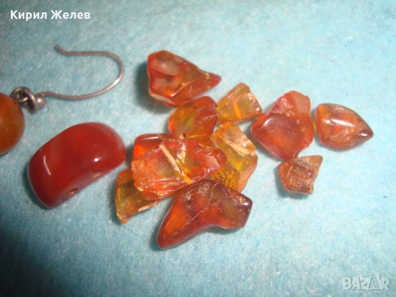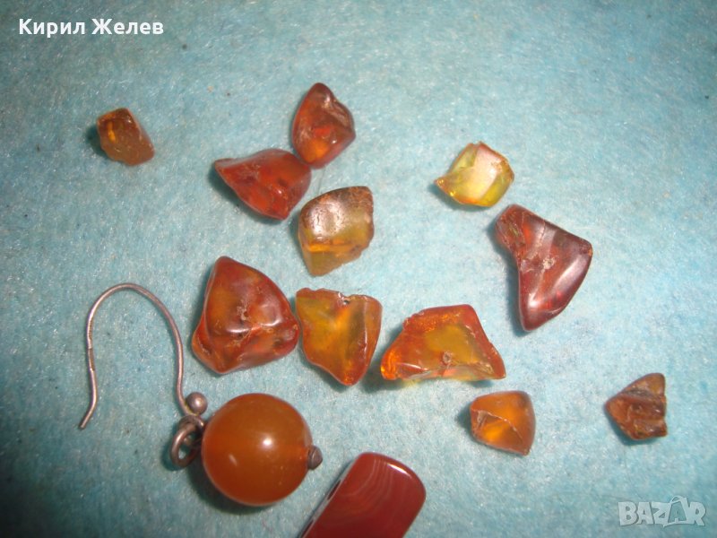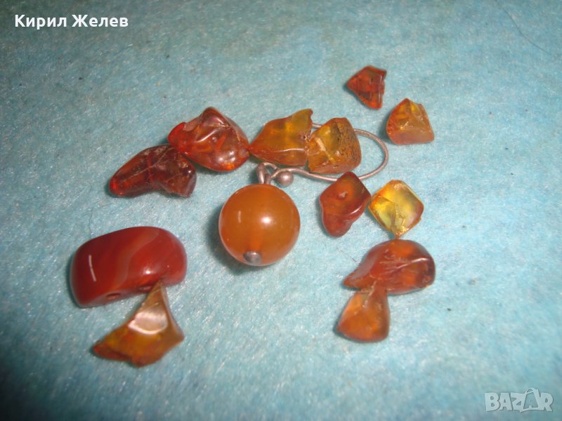 СТАРА СРЕБЪРНА КЕХЛИБАРЕНА ОБЕЦА иЛОТ БАЛТИЙСКИ НАТУРАЛЕН КЕХЛИБАР и1 КАРНЕОЛ ШЛИФОВАНО КАМЪЧЕ 23568